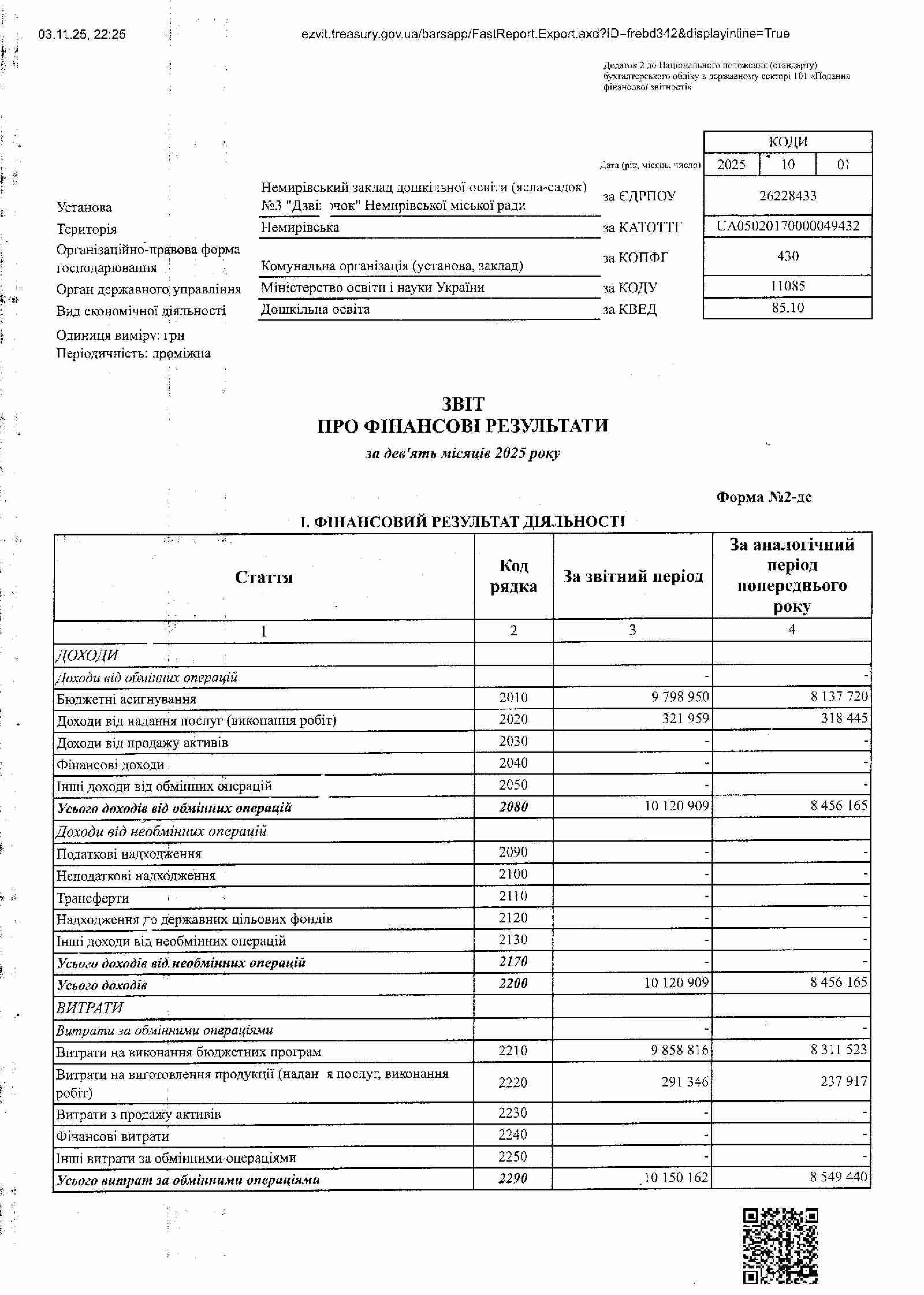 Річний звіт про діяльність закладу